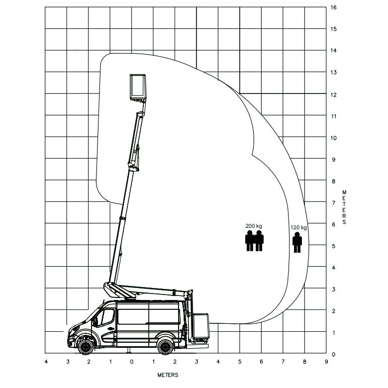 8,2m (max räckvidd uppnås vid max 120 kg)