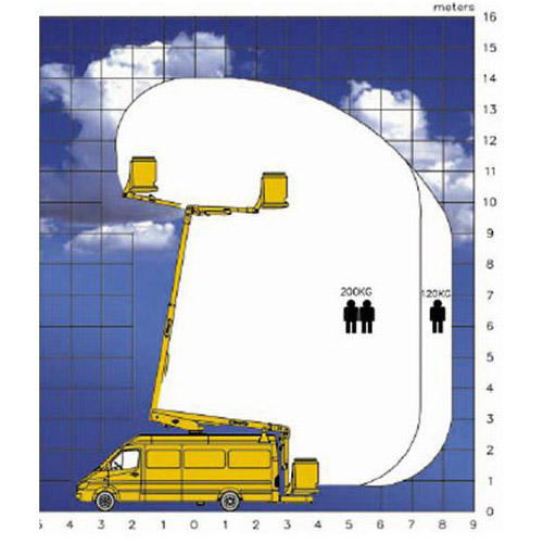 Bakaxellås fungerar som stabilisering inom begränsat arbetsområde. Inom detta arbetsområde behövs inga stödben. Skulle stödben behövas så körs de enkelt ned från korgen. Liften är monterad på en skåpbil. Skåpet innehåller arbetsbänk och stort förvaringsutrymme. Arbete-på-väg-skyltar samt möjlighet att gå igenom skåpet för att nå liftkorgen.