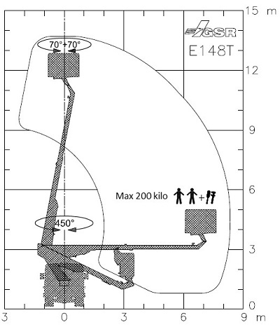 Liften har bakaxellås. Liftarmen kan köras i begränsat område (sväng ca 20 grader åt vardera hållet) utan ansatta stödben. Behövs ytterligare räckvidd måste stödbenen köras ned.