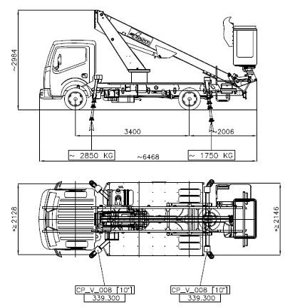 Liften är utrustat med drive option. Fordonet kan flyttas från hytten utan att bommen är nedlagd i transportläge (förare och person i liftkorg måste ha radiokontakt). Lampor för arbete på väg samt skåp med bra lastutrymme finns på bilen.