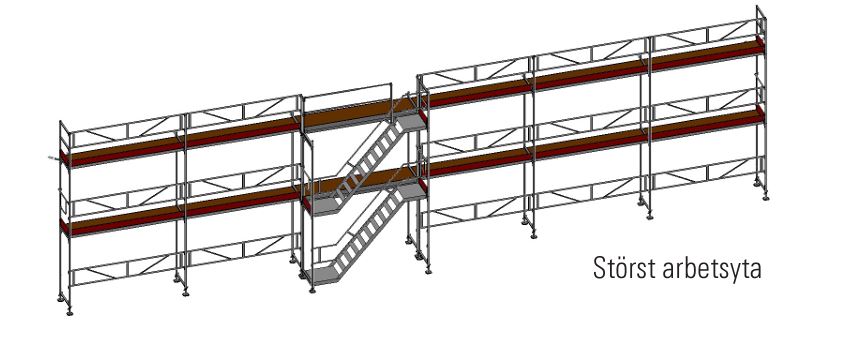 En komplett ställning – du får med allt som behövs för 114 m2 arbetsyta.