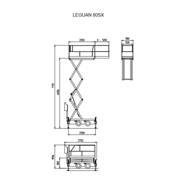 Terränggående saxbord med stödben för inomhus och utomhusbruk.
